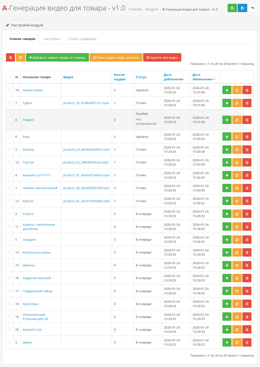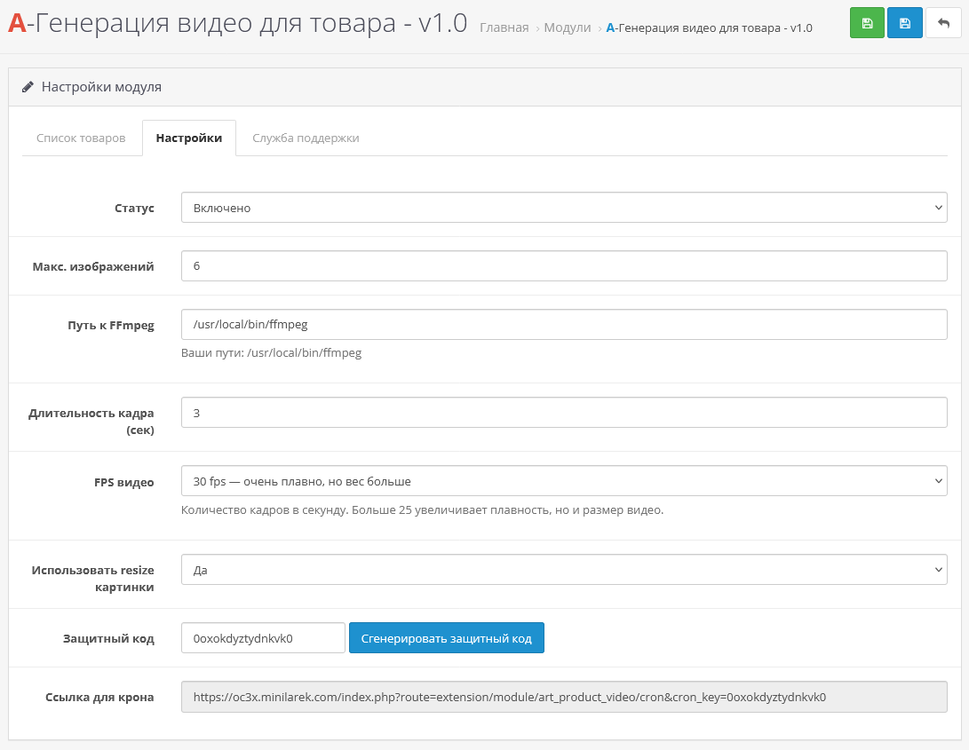 Our module automatically generates MP4 videos from all product images directly in the OpenCart admin panel. No third-party services, no manual installation and noadditional content preparation.