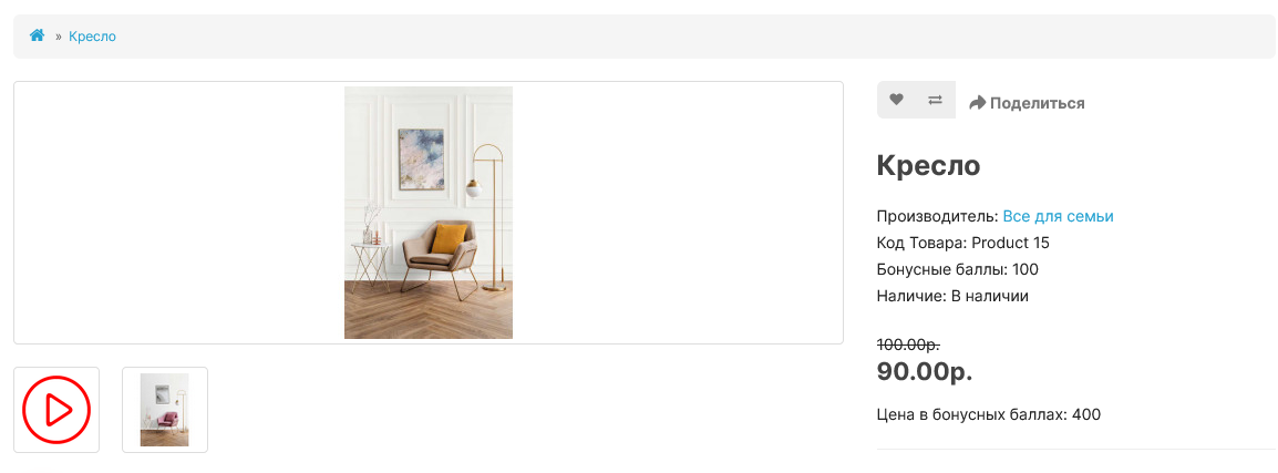 If you are using a non-default theme, you may need to adapt the video output in the product card to your theme (adaptation is paid for from 1000 rubles);