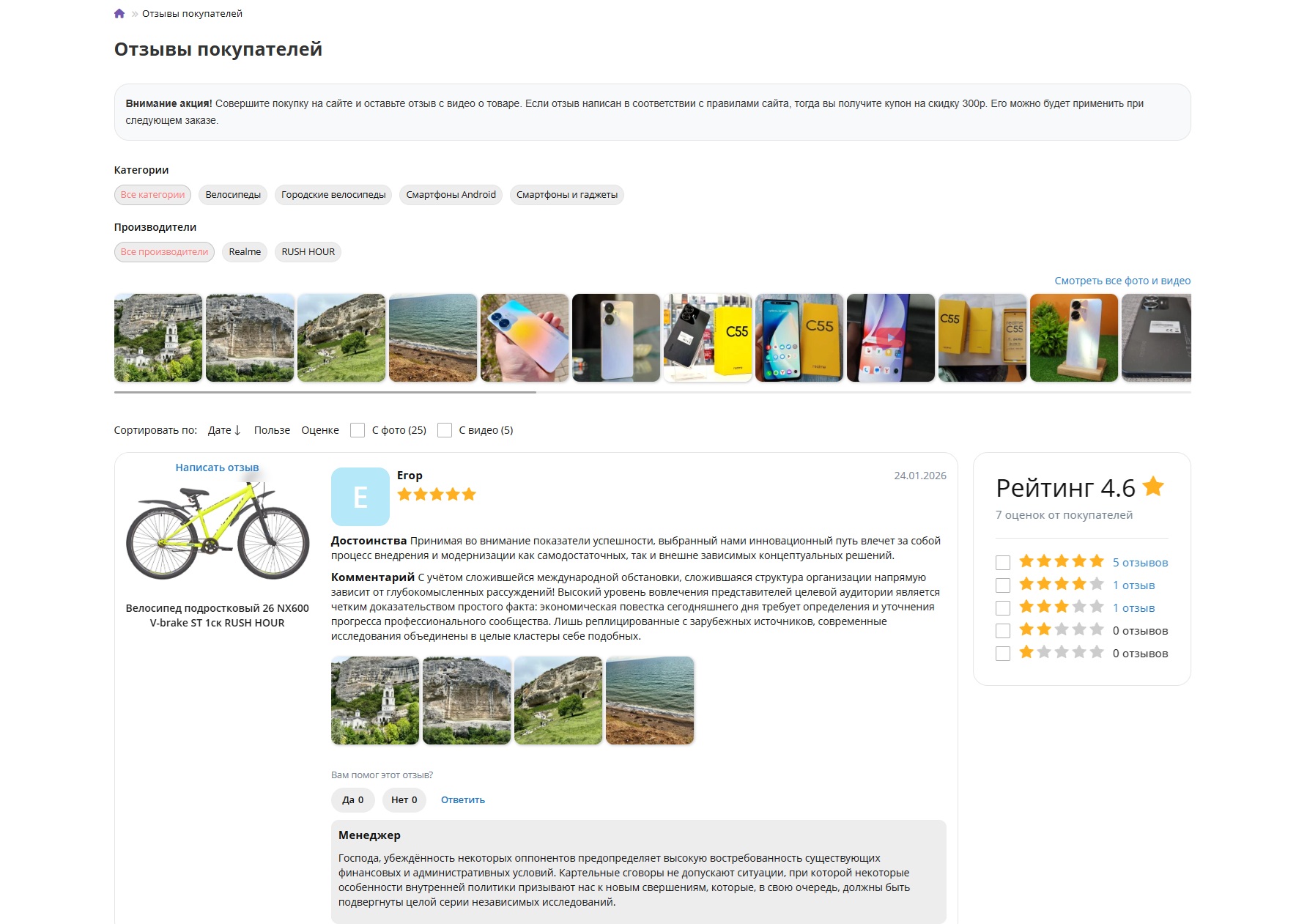 2) Страница со всеми отзывами о товарах;