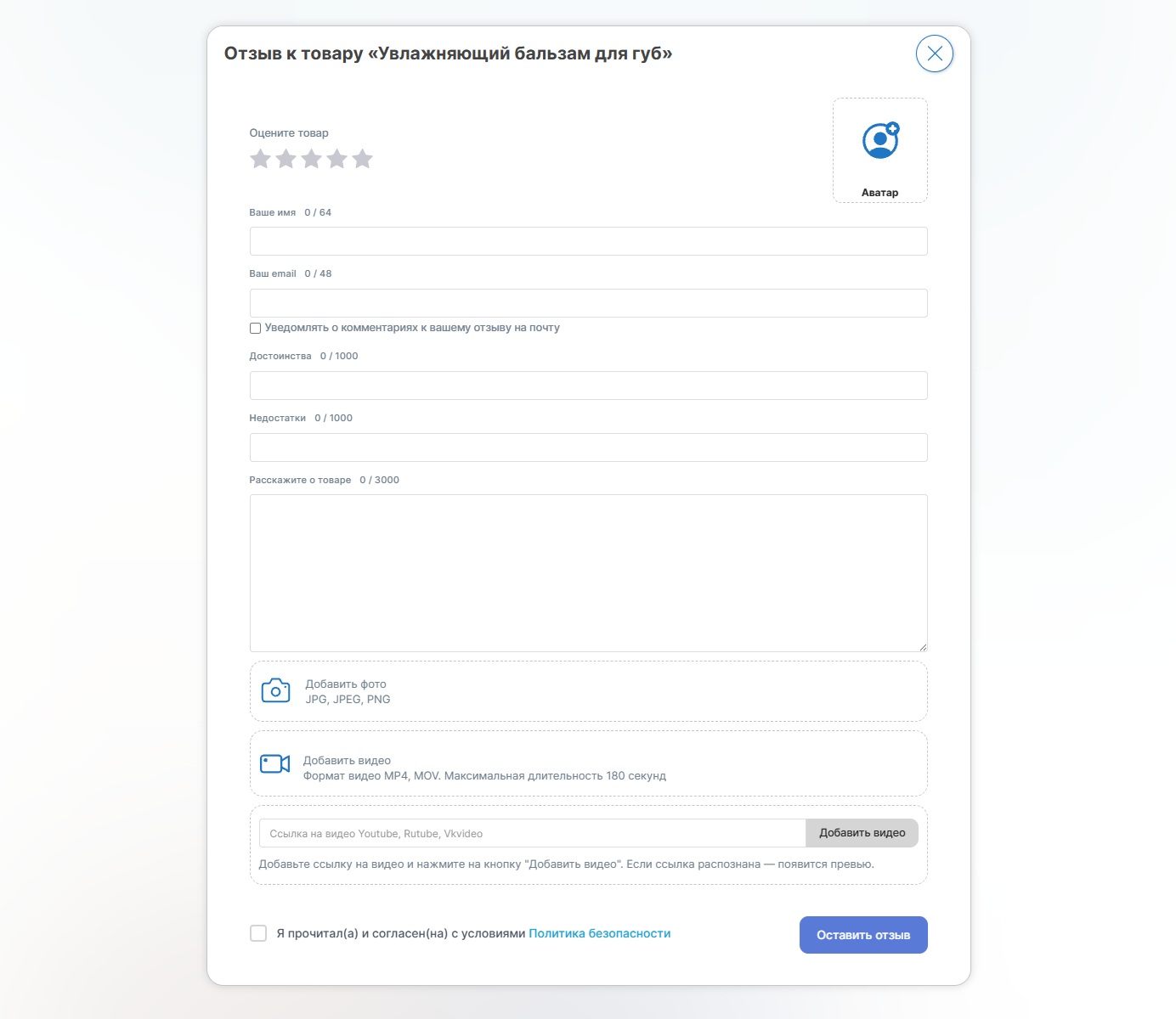 1) Добавление фото и видео к отзыву. Наложение водяного знака при загрузке фотографий.