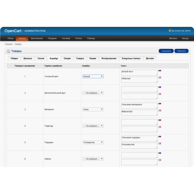 2. В "атрибутах" и "группах атрибутов" сортировка происходит по "порядку сортировки" поэтому для удобства желательно её использовать.
