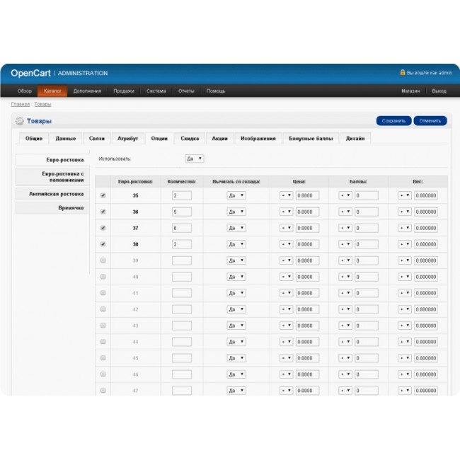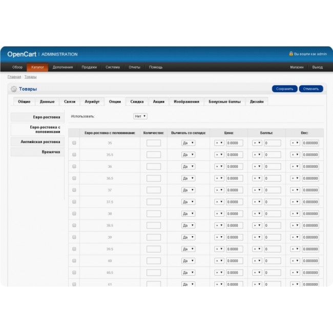 Данные изменения в админке позволяют добавлять атрибуты и опции товара в один клик. Теперь не надо тратить время и вспоминать какие там атрибуты и опции должны использоваться и как они называются!