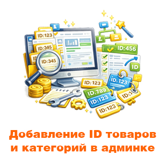 Модификатор добавляет в административной части сайта в разделе "Категории" и "Товары" дополнительный столбец с ID, а также в разделе "Товары" дополнительное поле для поиска по ID товара.