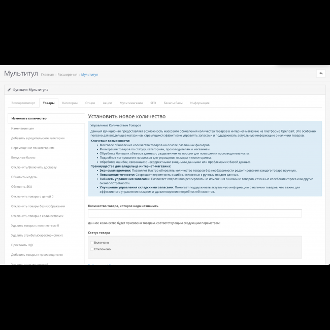 Что умеет делать модуль «Мультитул» для OpenCart: