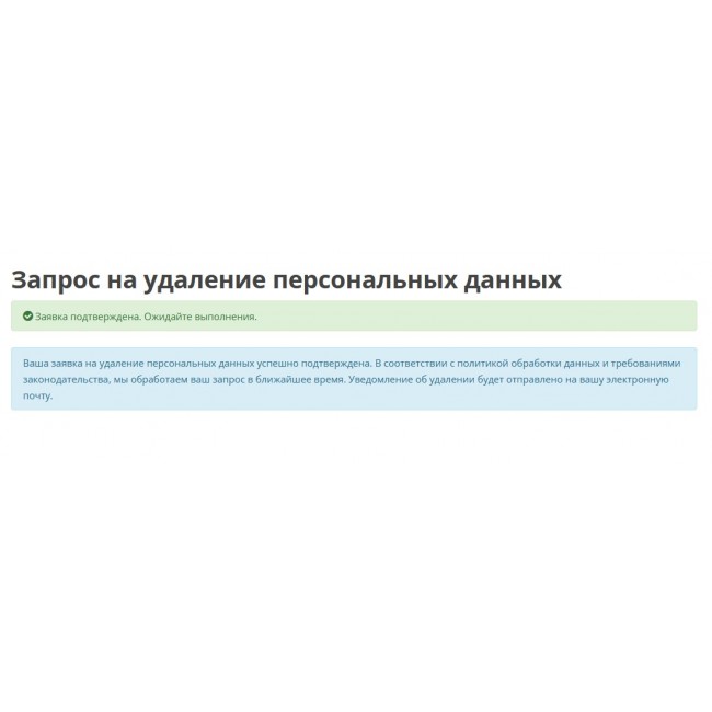 - Ссылка в личном кабинете пользователя для подачи запроса на удаление персональных данных.