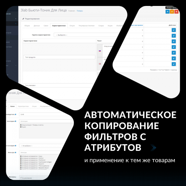 Данный модуль позволяет автоматический за пару секунд скопировать все имеющиеся атрибуты(характеристики) в фильтры и добавить их к тем же товарам, к которым принадлежал атрибут(характеристика).