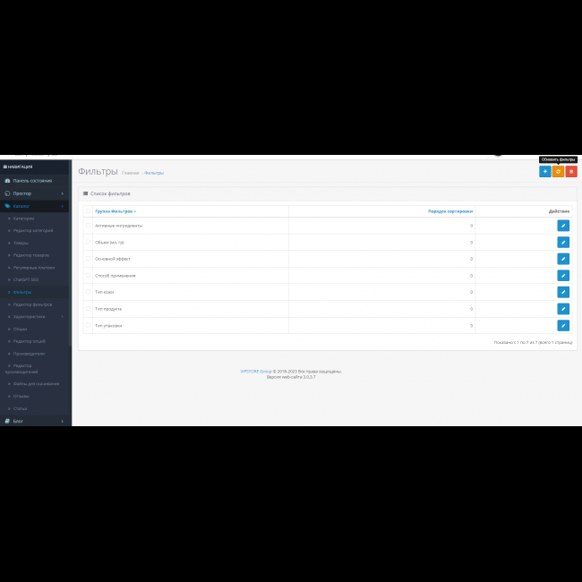 - Модуль имеет всего 1 кнопку "Обновить фильтры"