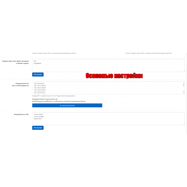 Чтобы заблокировать ботов нужно выбрать страны которые вам не нужны и модуль заблокирует их.