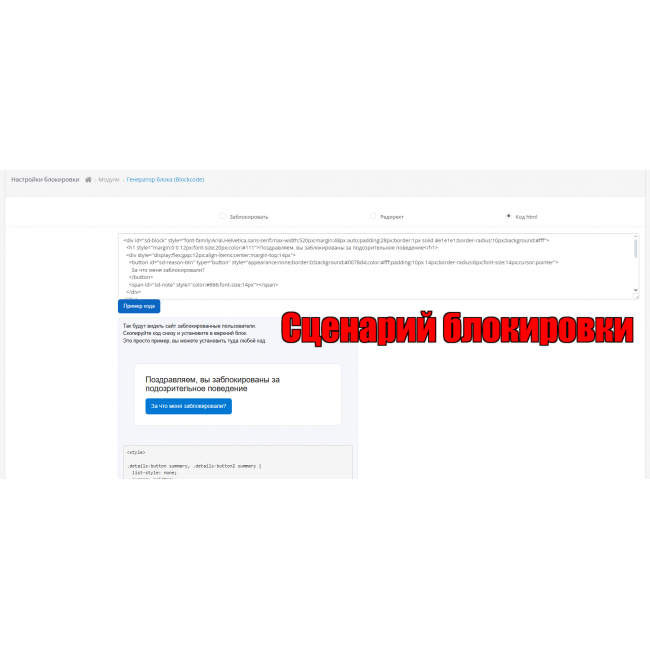 8 Зайдите в раздел настройки блокировки и выберите что делать с заблокированными пользователями, просто блокировать (по умолчанию), редирект (не рекомендуется слать их на чужие сайты, там увидят откуда они перешли), или код HTML ( можно установить красивую форму с контактами).