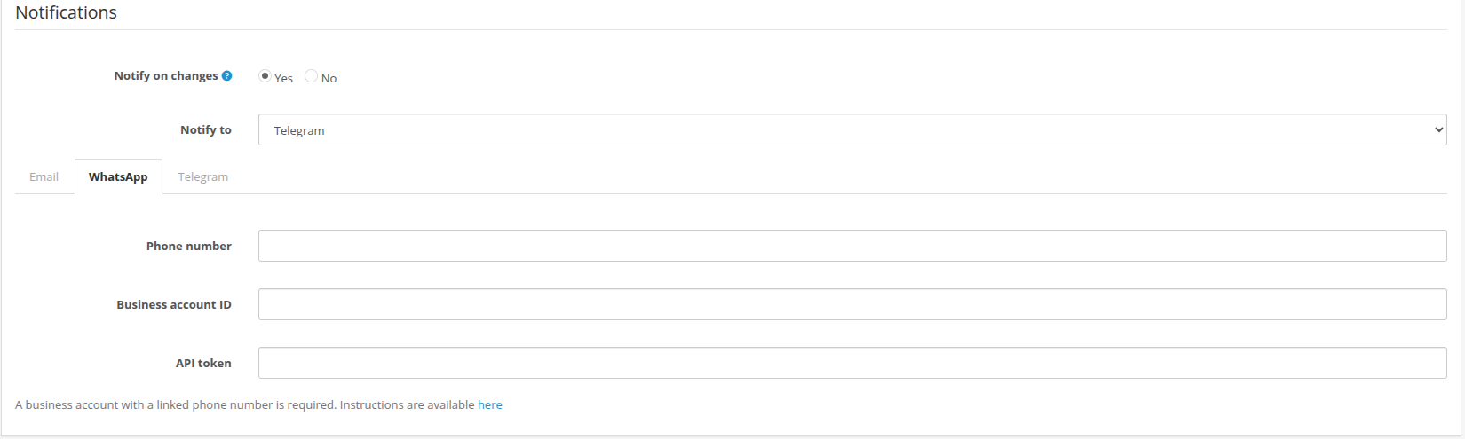 * feature: Добавлены уведомления на Email, WhatsApp, Telegram