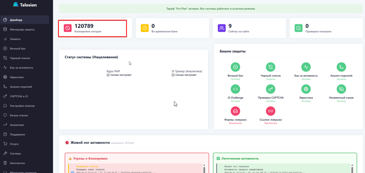 - Talosion — это не "блокпост на границе". Это интеллектуальная служба безопасности внутри вашего сервера. Он видит не просто запросы, а поведение и контекст: