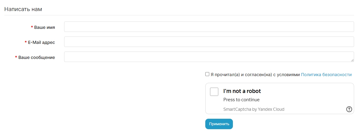 Yandex SmartCaptcha Pro - эффективный инструмент для защиты вашего интернет-магазина от спам-ботов и автоматических регистраций. Модуль интегрирует современную проверку от Яндекса, которая в большинстве случаев вообще не требует от реального покупателя никаких действий.