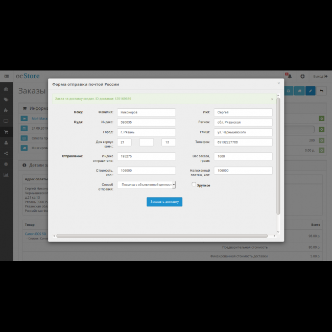 в систему Почты России. Это сделает модуль.