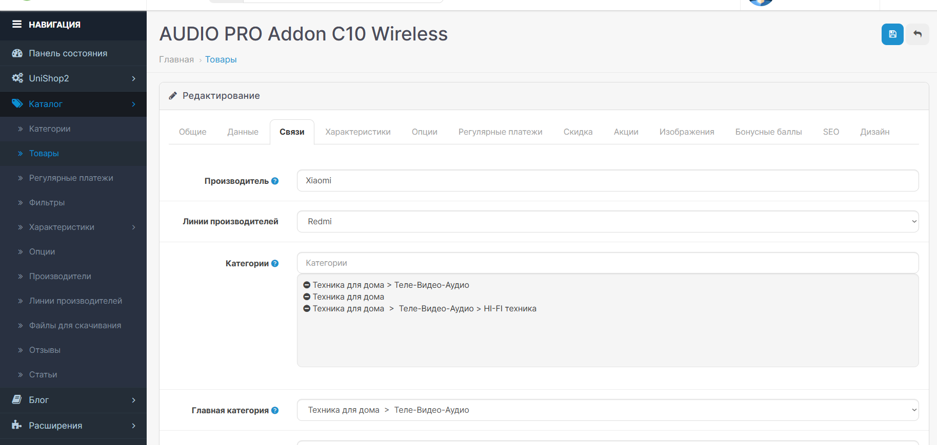 7. Для каждой линии заполните SEO-поля, описание и настройку индексации.