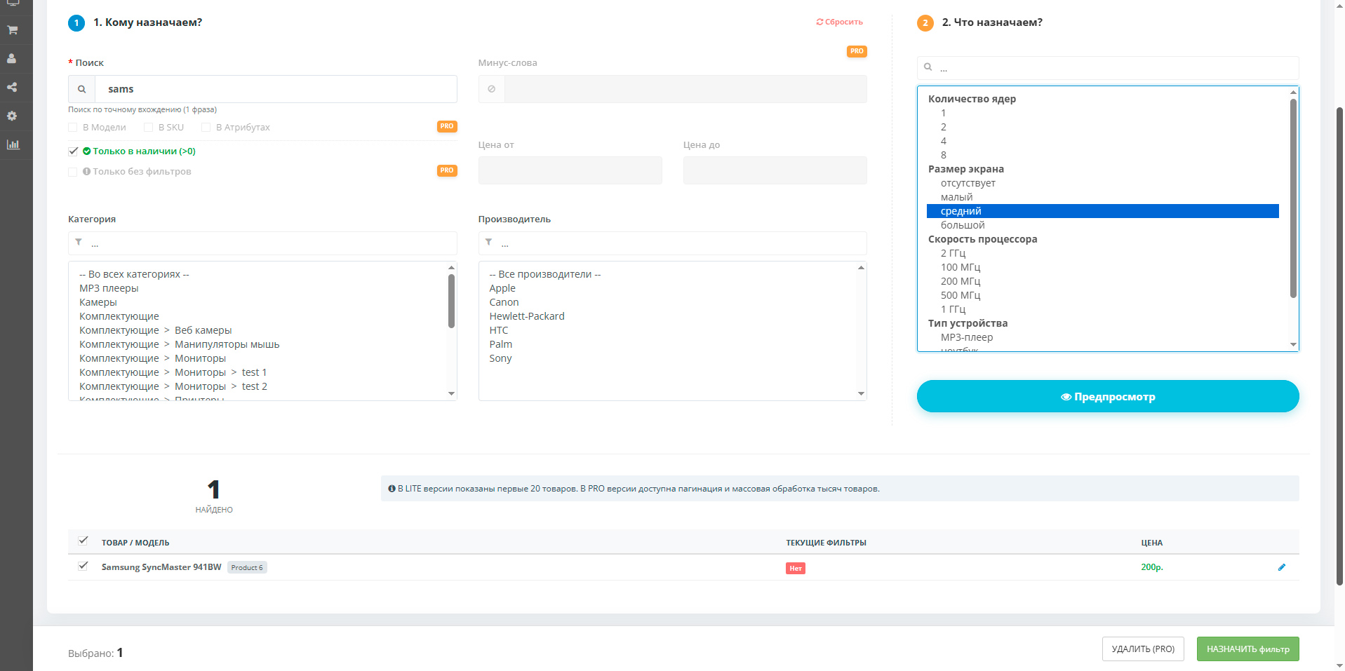 Предпросмотр: Покажет, сколько товаров будет затронуто, но ничего не изменит в базе.