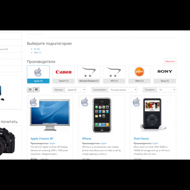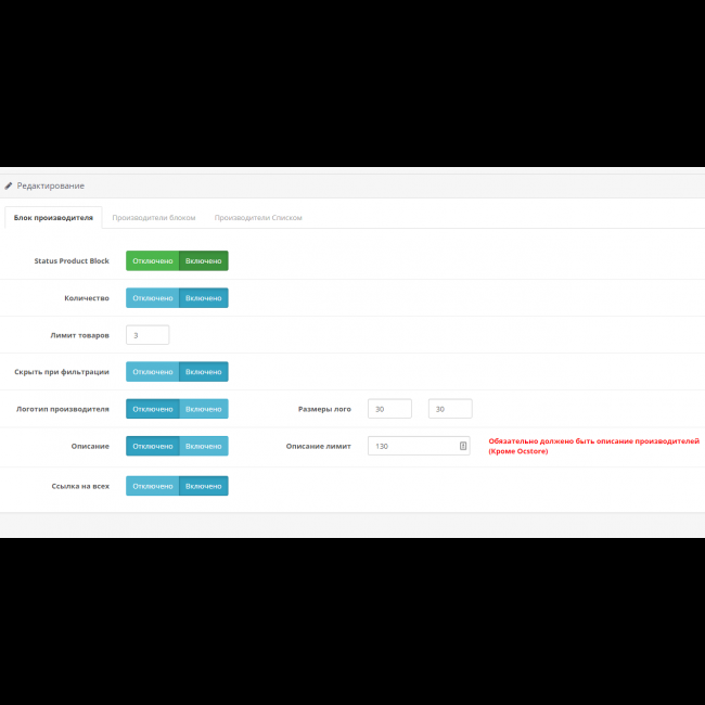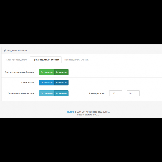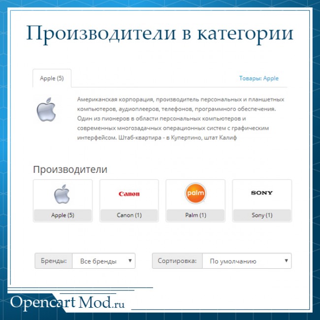 Модуль добавляет в категории товаров блоки с сортировкой по производителям тремя разными способами.
