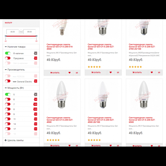 4. Фильтр по цене