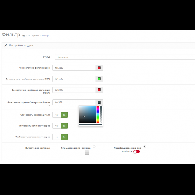 5. Возможность задавать собственную цветовую гамму для всех элементов фильтра.