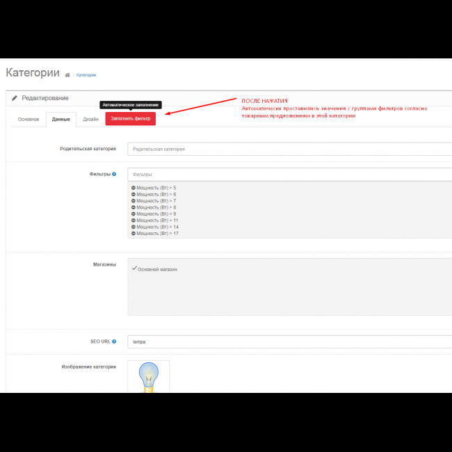 8. Возможность автоматического добавления значений фильтра в категории.