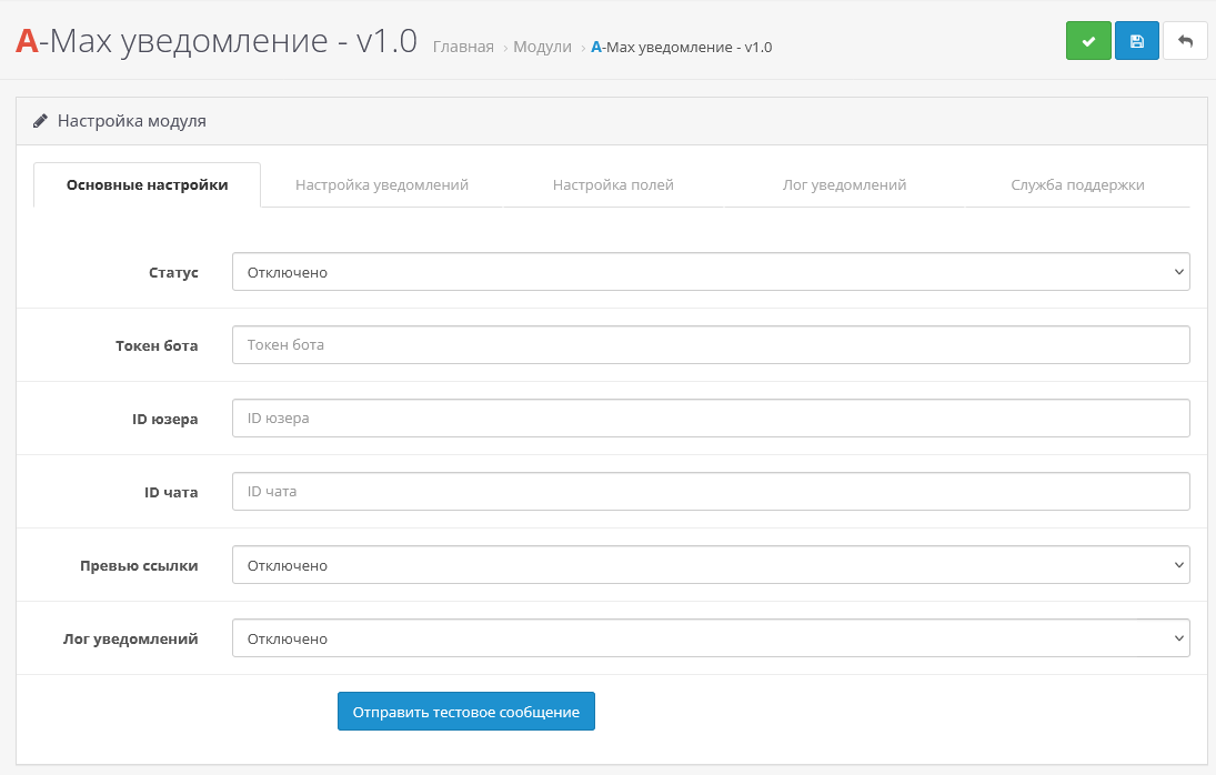 - Зайдите в настройки модуля;