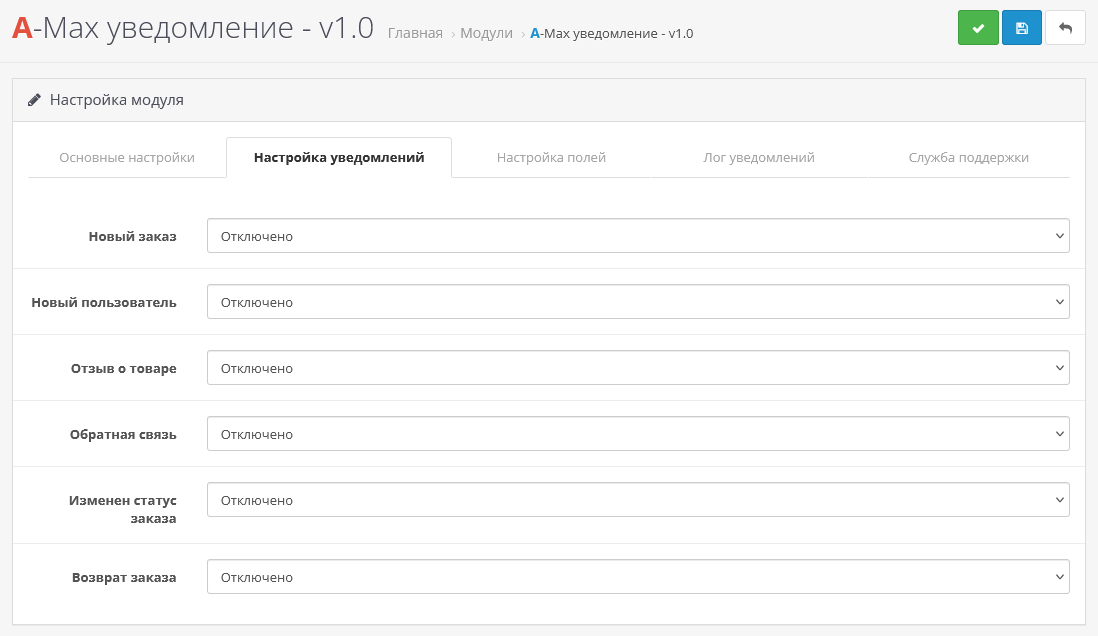 - Установите архив art_max_notification_3.x.ocmod.zip через стандартный менеджер дополнений;