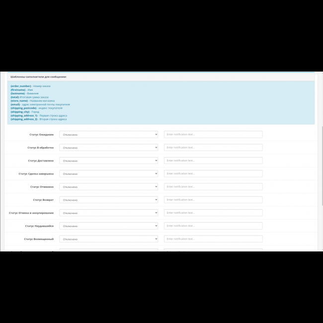 - Выбрать статусы о которых хотите уведомлять клиентов;
