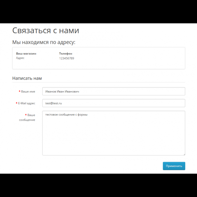 - Собственный код валидации/проверки полей. По умолчанию модуль не проверяет ошибки, а сразу отправляет сообщение.