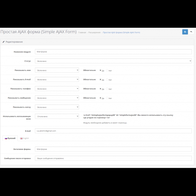 Простая Ajax-форма - это модуль, который позволяет легко интегрировать настраиваемые формы на вашем веб-сайте.Он предоставляет два различных режима работы: встроенную форму и всплывающую.