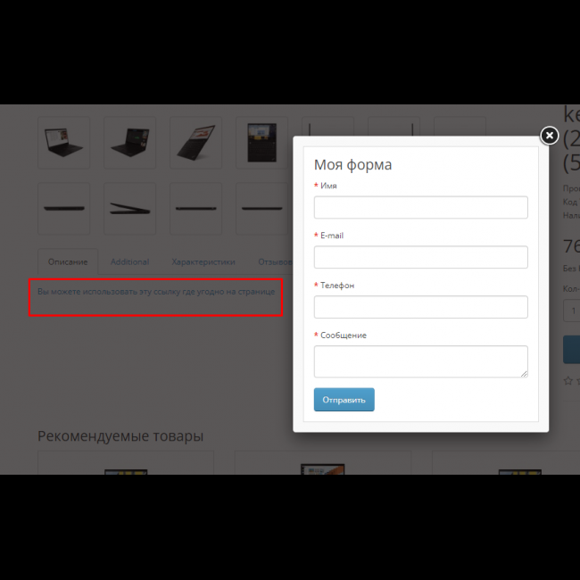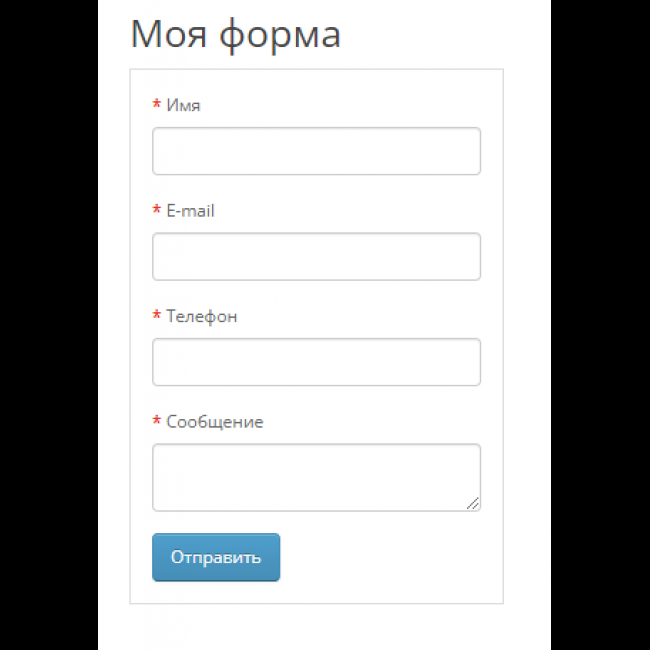 Поддерживаемые поля: Имя, Телефон, Email, Сообщение, Капча.