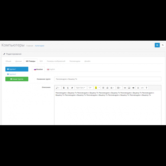 Модуль дает возможность создавать множество блоков с рекомендуемыми товарами в категориях и самих товарах