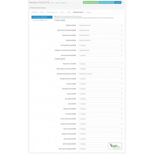 Ответы на частые вопросы по отправке заказов в модуле Интеграция Opencart и Битрикс 24