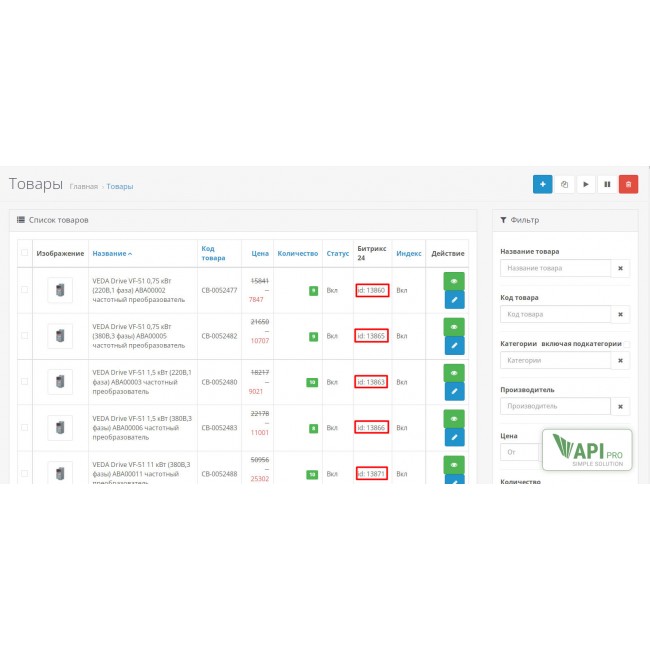 Результат действий можно использовать для изменений в Opencart: товаров, заказов, клиентов.