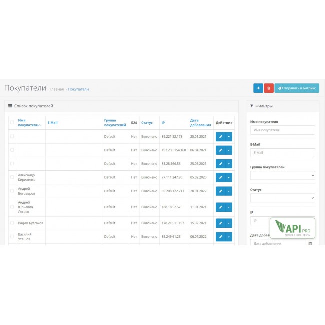 2 Email клиента в Битриксе (email является логином в Opencart и поэтому в первую очередь ищем в битрикс 24 по нему)