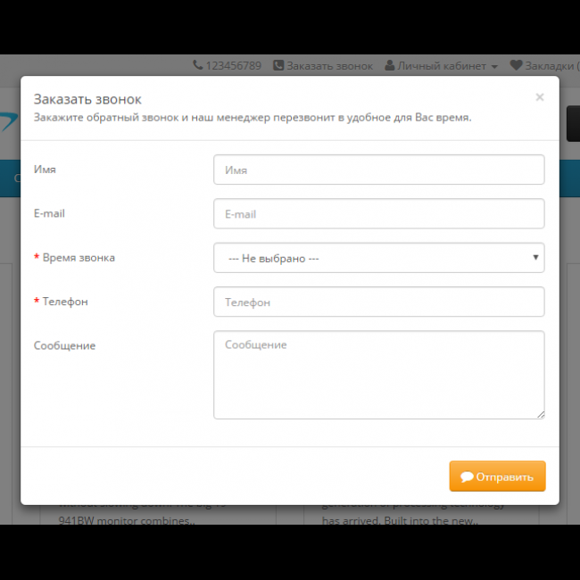 Модуль отправляет администратору магазина SMS и сообщение на электронную почту от пользователя с просьбой перезвонить ему по указанному телефону и в выбранное время.