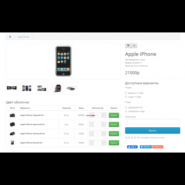 С помощью модуля можно задать для каждой опции кнопку купить.