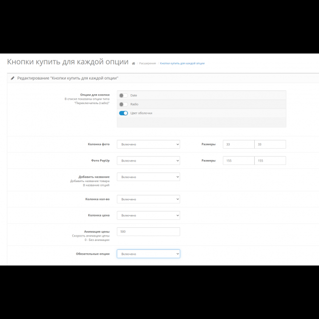 - Обязательные опции - Если выключить то будет игнорировать добавление товара с обязательными опциями При включении будет требовать обязательные опции тем самым добавление товара не сработает (Ставить лучше необязательные опции в самом товаре)