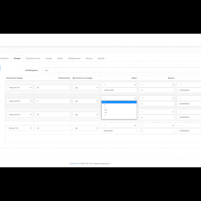 - Поддержка расширенных наценок на опции от Mpn2005 и liveopencart