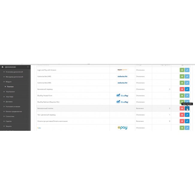4. Открыть форму редактирования настроек модуля - раздел системы администрирования "Модули-Оплата" - кнопка "Редактировать"