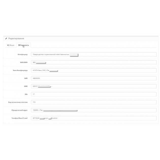 5. В форме редактирования заполнить все необходимые настройки. И заполнить все свои банковские реквизиты.
