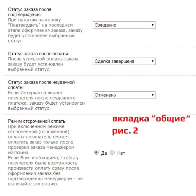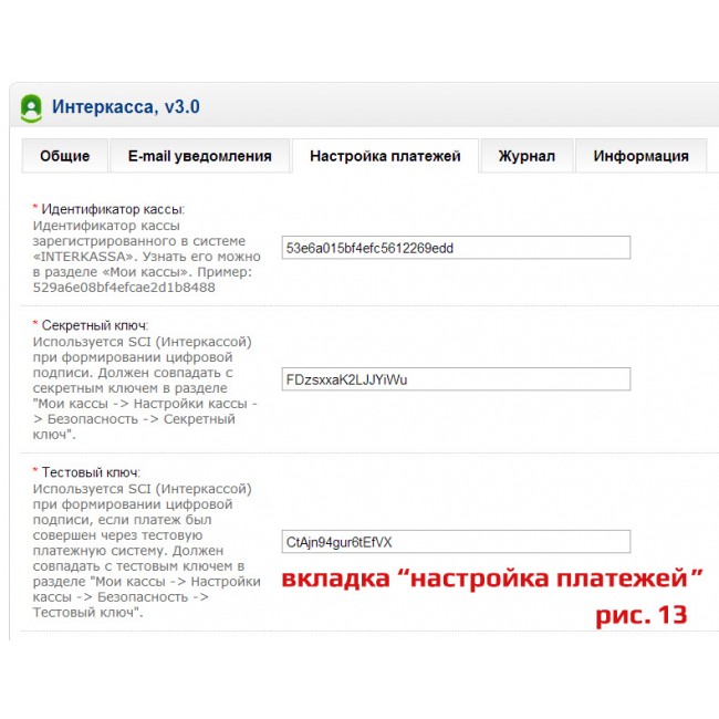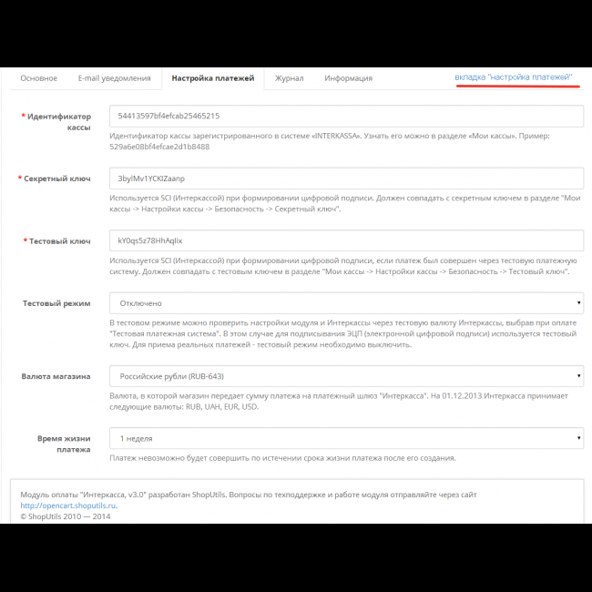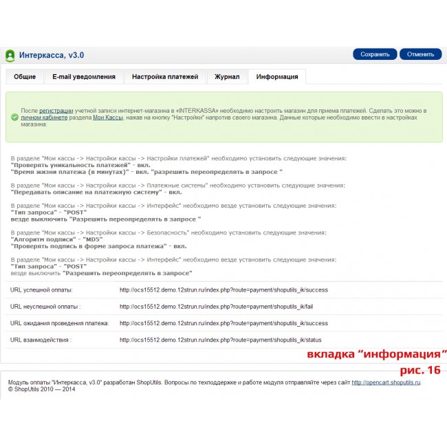 - Информация по настройке параметров Интеркассы на закладке "Информация";