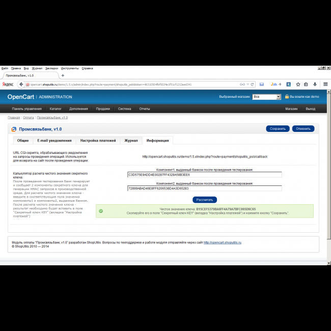 - Калькулятор расчета чистого значения секретного ключа теперь автоматически записывает результат в поле "Секретный ключ KEY" (вкладка "Настройка платежей").