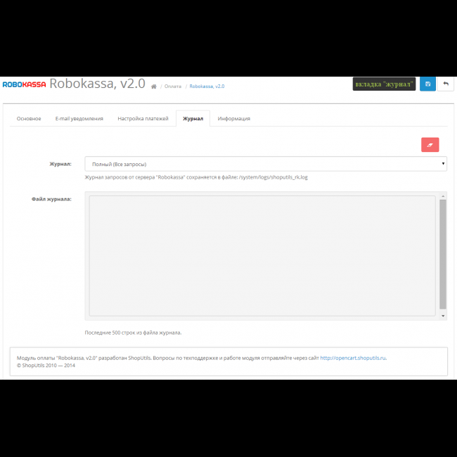 - Ведение журнала запросов от сервера "ROBOKASSA"
