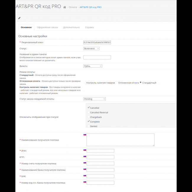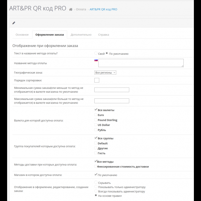 - Возможность изменения названия метода оплаты.