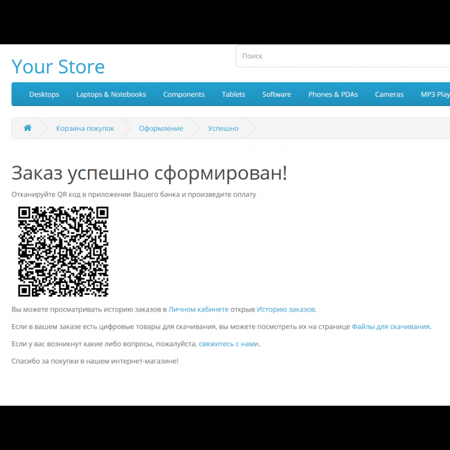 - На странице оформленного заказа, отображение qr, ссылки на просмотр qr или возможно в настройках задать Ваш текст и ссылки.