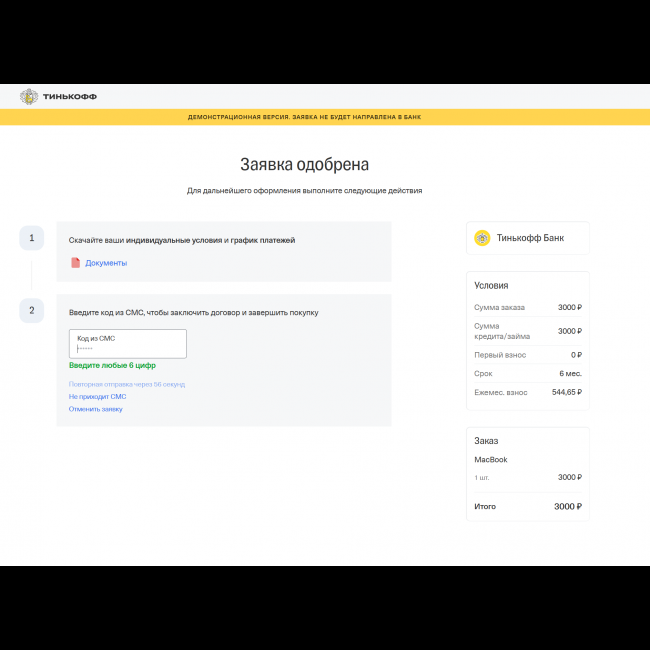 - Поддержка купонов в оформлении кредита (ценник товаров будет сформирован с учетом всех скидок и наценок)