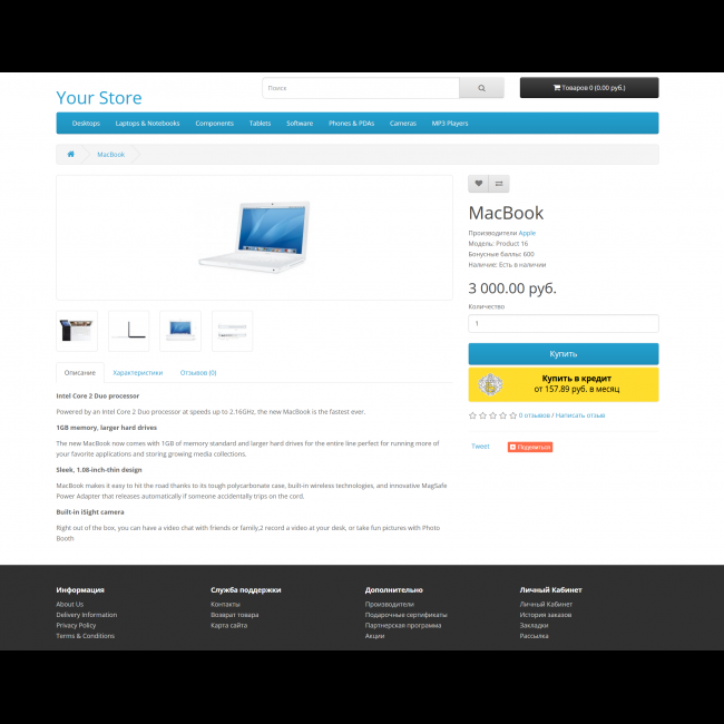 - Поддержка кредита магазина в оформлении кредита (ценник товаров будет сформирован с учетом всех скидок и наценок)