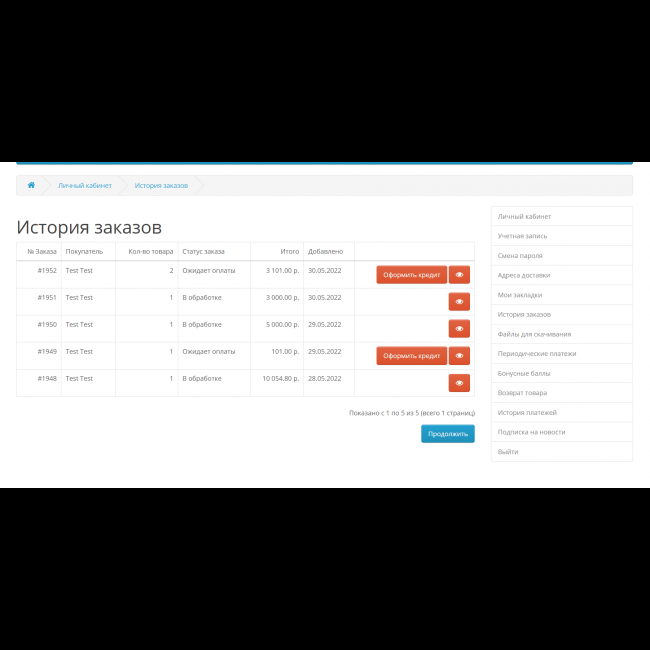 - Список удачно оформленных кредитов/рассрочек в админ панели сайта