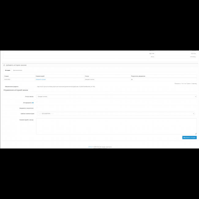 - Возможность использования инструкции для офрмления кредита при оформлении заказа (использование переменных таких как «номер заказа»,