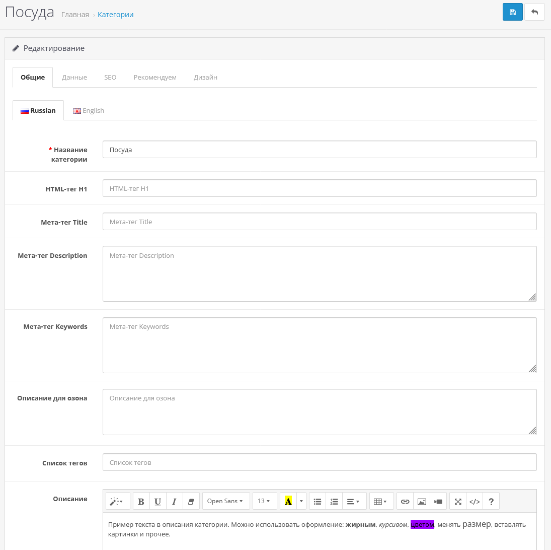 - Добавление дополнительных полей к товарам, категориям и производителям напрямую через админку OpenCart
