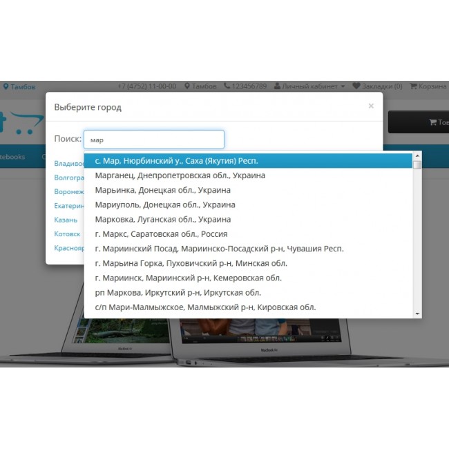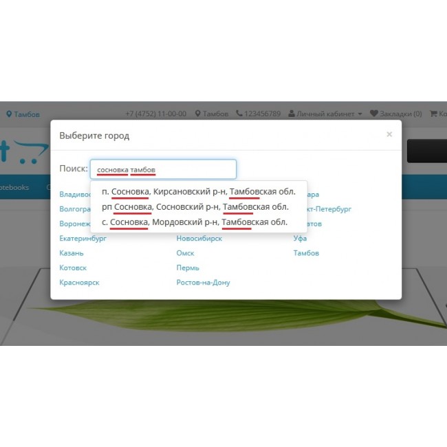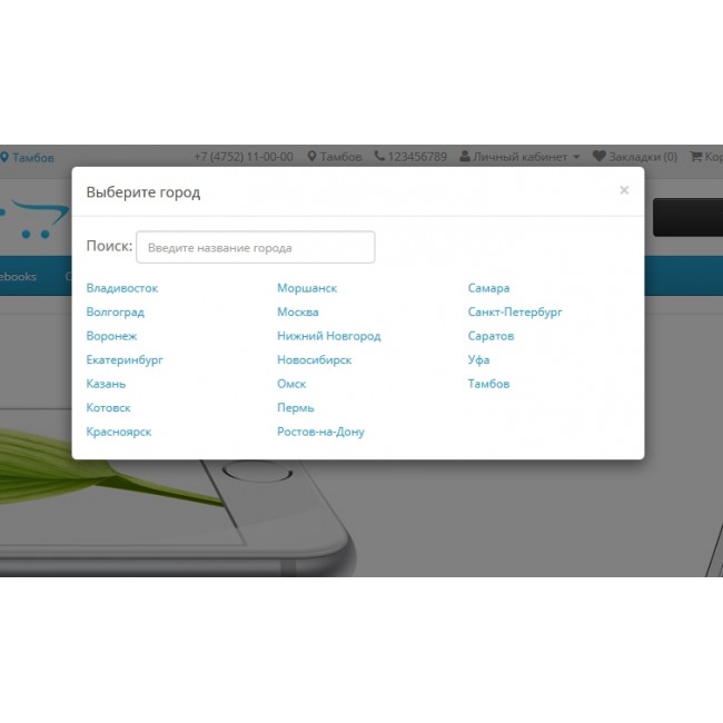 ✓ Определение города пользователя по IP с возможностью поменять его вручную